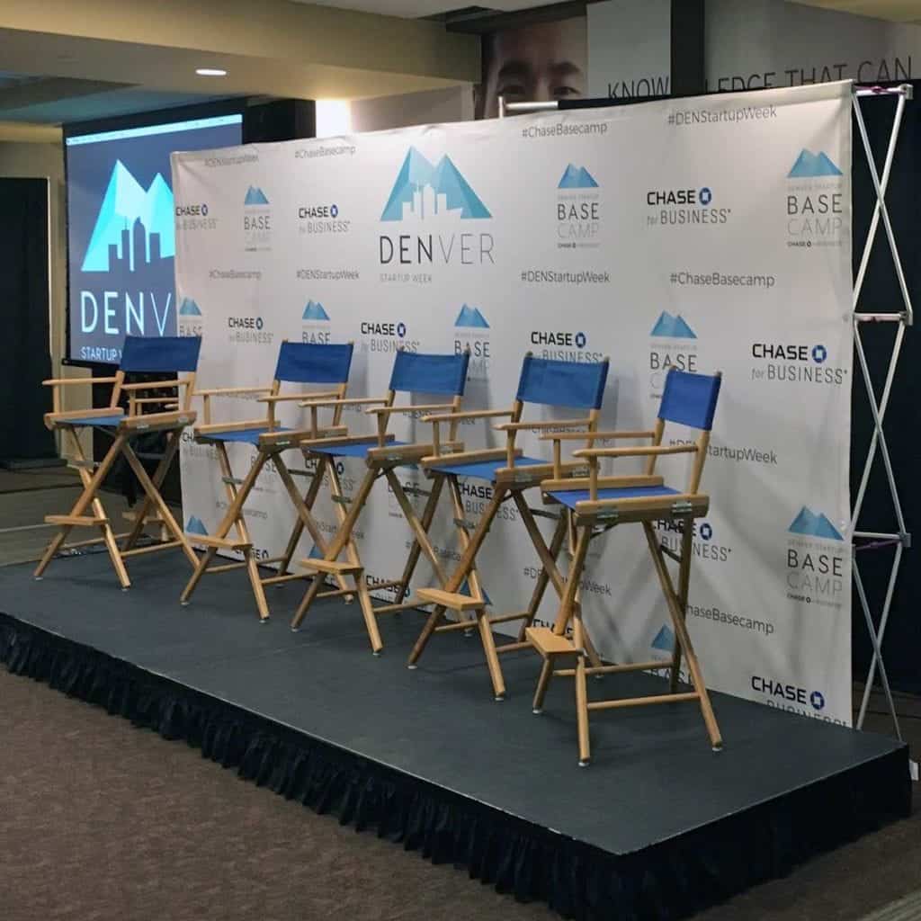 Your event photo op will pop with a branded step and repeat banner